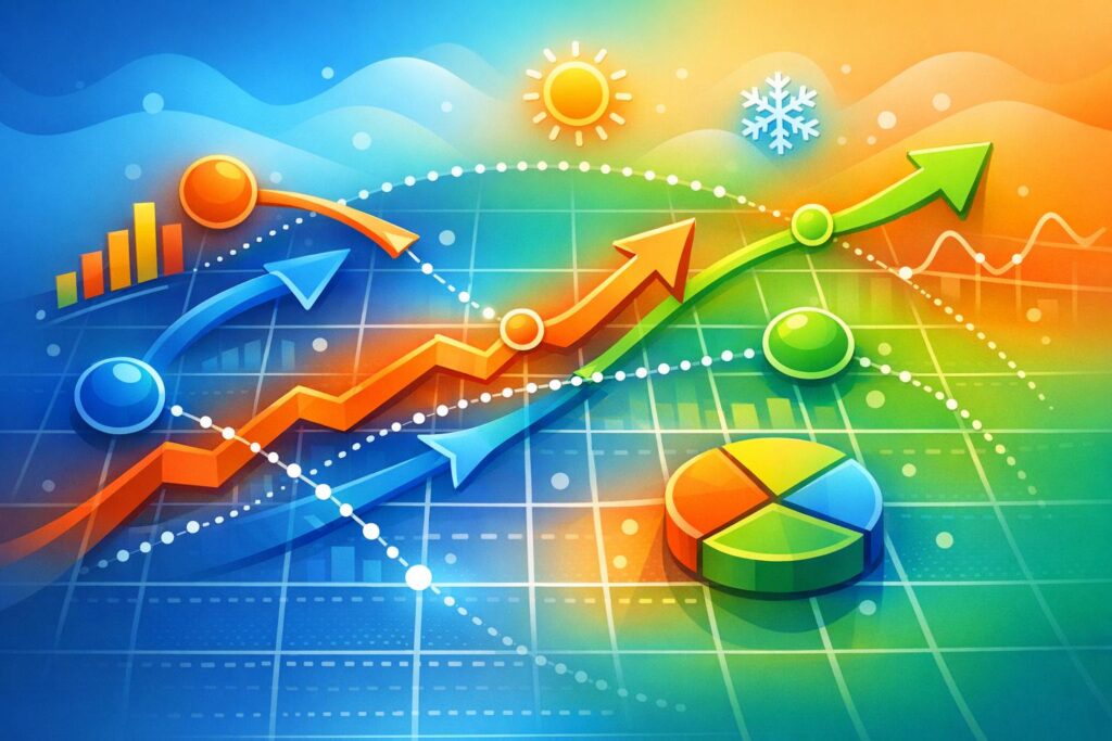 - Annual Refinements: Compare performance year-over-year to spot long-term shifts in seasonal peaks. For example, a summer peak may move from mid-July to late August over time. Analyzing at least five years of data can reveal these changes.